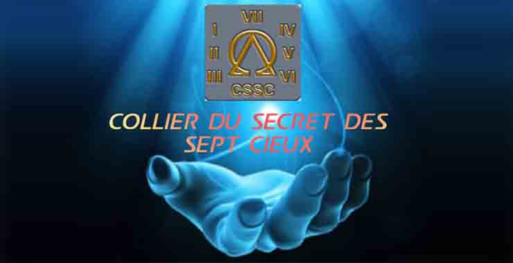 Nous avons un outil de distinction et de travail très capital, le Collier du Secret des Sept Cieux, j'en avais parlé plus haut. Il vous identifie et vous intégrer au 1er niveau de la Communauté.